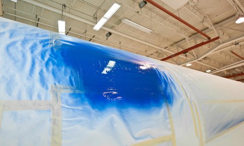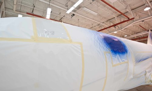 These are the latest pictures of our new aircraft. The Cessna is going through the "paint shop" - it will take about three weeks to finish the paintwork.