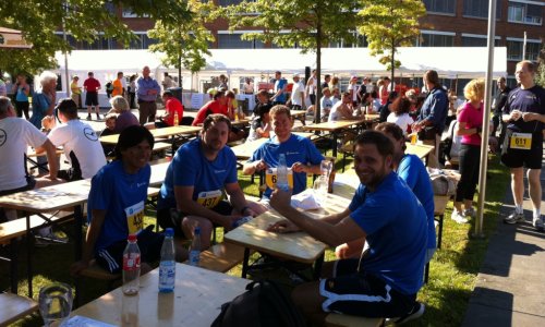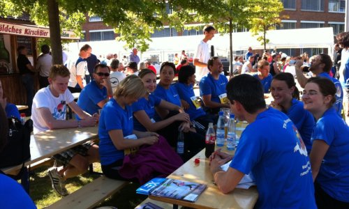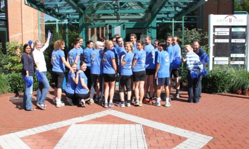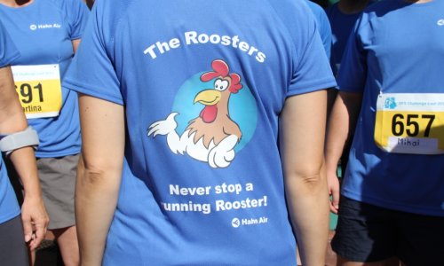 On 1 September 2011, part of the Hahn Air team participated at a 6-km run, the "DFS Challenge", close to our head office in Dreieich, Germany. According to our motto "Never stop a running Rooster" our team, "The Roosters", had great fun facing this challenge and showing off its true sporting spirit - all crossing the finishing-line! But not only the runners were causing a sensation, also our lovely Hahn Air cheer leaders were outstanding!