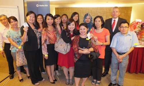 On 12 February 2013, Hahn Air invited its top selling agents in Malaysia to the annual award ceremony in Kuala Lumpur. Ralf Masermann from Hahn Air and our Service Partner Global Alliance welcomed about 40 guests to a dinner event and a fun night with games and prizes in the Marriott Hotel. Thank you all for your great support and trust in our services!