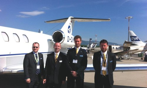 The Hahn Air Flight Operations team sends greetings from Geneva! They are at the EBACE (European Business Aviation Convention & Exhibition) today to present our new CJ4 D-CHRC for Textron Aviation.