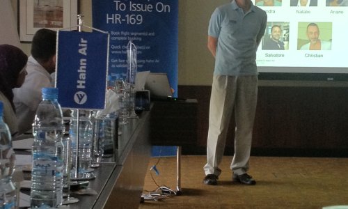 Ahmed Mansour, Andreas Ochse, Salvatore Maugeri, Tobias Jost, Candy Kasonkomona, Frida Erdmann and Sabine Ullrich from Hahn Air went to Dubai to welcome and meet many Hahn Air Service Partners from all over the world.
