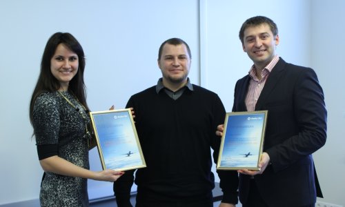 Deputy Regional Director Alexandra Taran and Director Global Account Management Andrey Sherstyuk visited the winners of our Pin-and-Win game. Oleg Snizhko won the game and Natalia Savytska was second best. We hope they enjoy their vacation when they redeem the travel vouchers they have won!