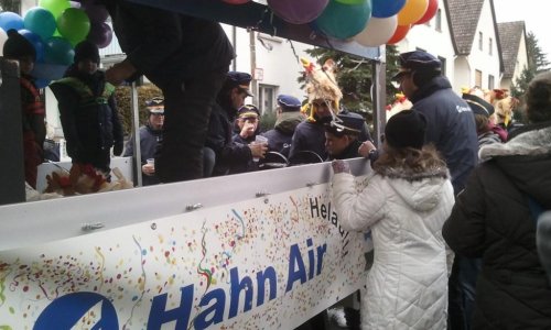 We participated at the carnival parade in Dreieich-Sprendlingen, Germany close to our head quarter on February 12th, 2013. The Hahn Air team got dressed up as roosters, flight attendants and pilots and joined in to cheer up the people. We had a great time with music, laughter and loads of candy for the crowd! We can’t wait for the next parade!