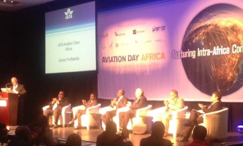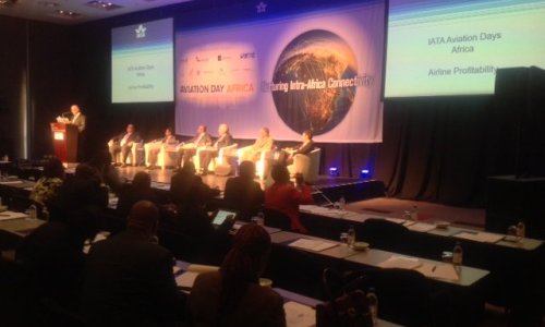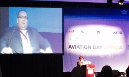 Candy Kasonkomona and Rick Sagger from Hahn Air attend the IATA Conference Call at the Sandton Convention Centre. Rick also joined the panel discussion "African Airline Profitability - Myth or Reality".