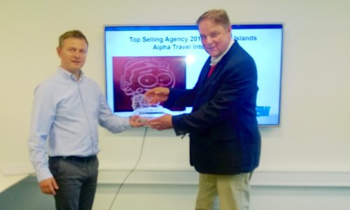 Eric Hoogendoorn, Director Global Account Management, visited the top selling agency "Alpha Travel" on the Faroe Island. He also handed over the Hahn Air certificate and the trophy.