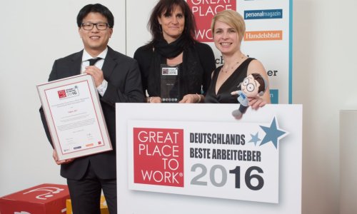 Recently, Hahn Air were nominated as one of the Top 100 workplaces out of 613 companies in Germany by the Great Place to Work® Institute. We were also invited to attend the Great Place to Work® awards which took place on the 16th of March 2016 in Berlin. Hahn Air was represented at the awards ceremony by Kirsten Rehmann, Martina Wiesmann and Seong-Un Yoon. We came in 32nd place in the 50-500 employees category and we would like to thank everyone for making Hahn Air a great place to work!