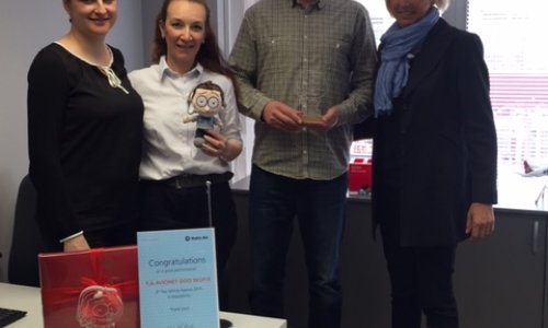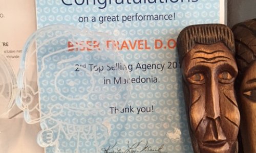 Marianna Cosani had the pleasure to hand over our Martin Trophy and certificate to Ecolog, Biser Travel and Avionet for being the top Hahn Air selling agencies 2015 in Macedonia.