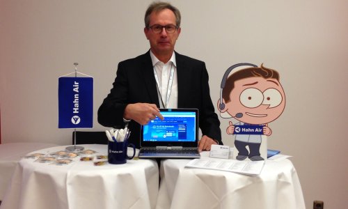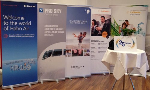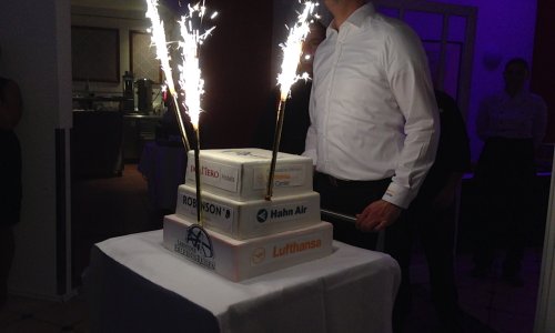 Congratulations to Lufthansa City Center on 25 years! This was celebrated with a wonderful cake at the Lufthansa City Center night in Stuttgart. Hahn Air was one of the sponsors and set up an HR table.
