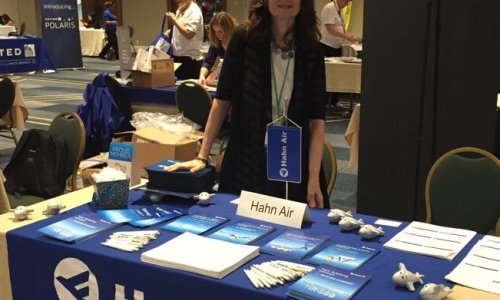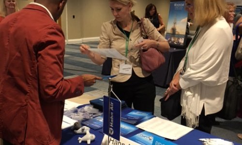 Janet Ulve, joined by Robert Jason Heerenveen, represented Hahn Air at the host organization's annual conference. 500 travel professionals from across the US and Canada participated in the conference. Activities included workshops, seminars and the travel supplier trade show.