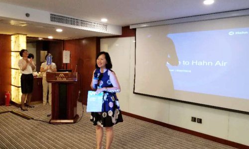 During her recent visit to Beijing, Joyce conducted a seminar for travel agents to inform them about Hahn Air's products and services. She was happy to welcome over 80 participants.