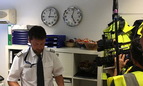 The Hahn Air Flight Operations Team was accompanied by a TV Team documenting the preparations of Hahn Air Lines' Düsseldorf-Mallorca flight.