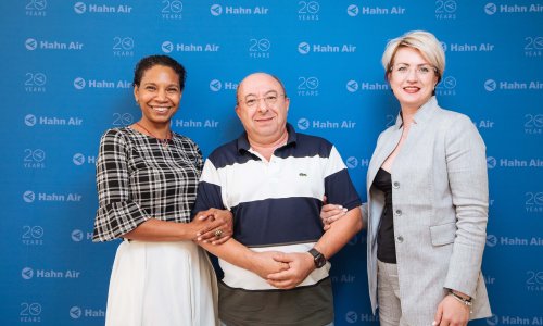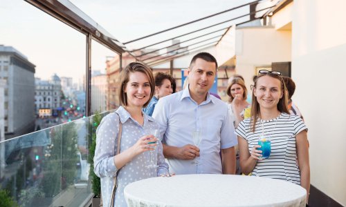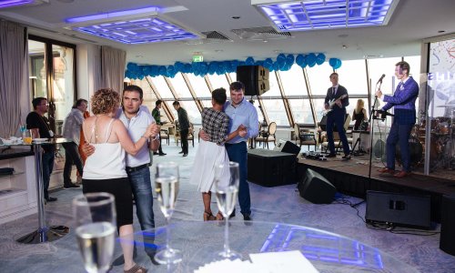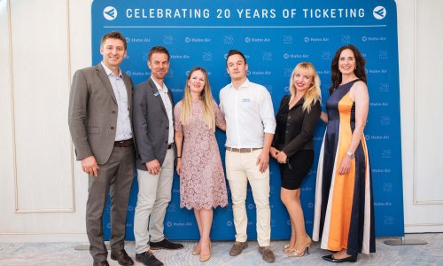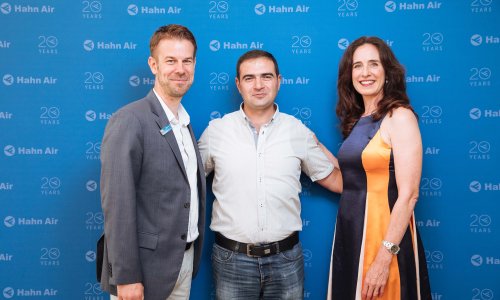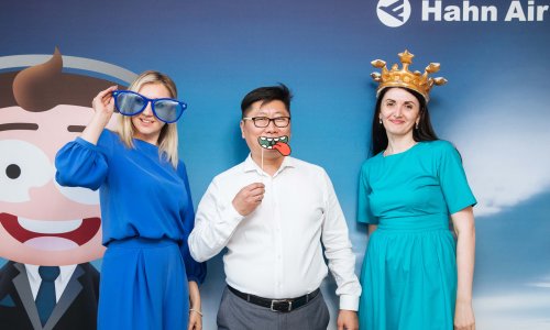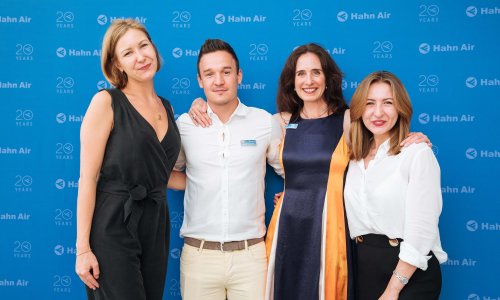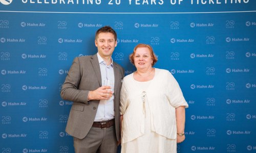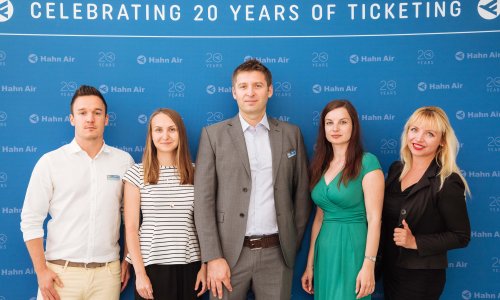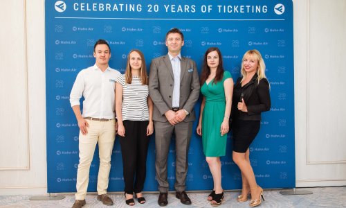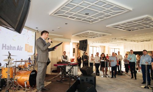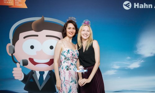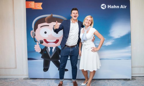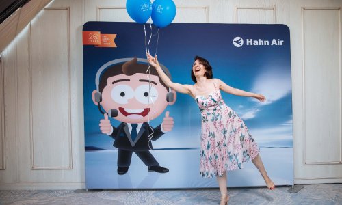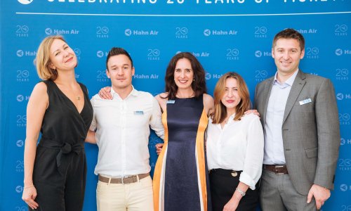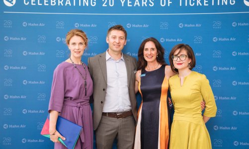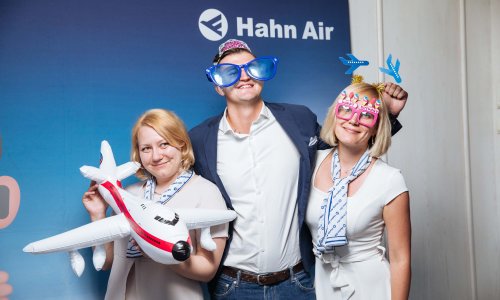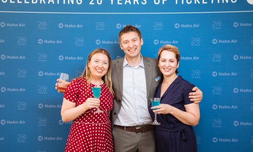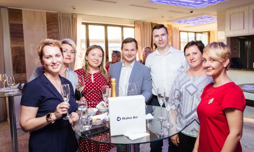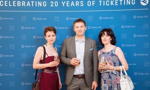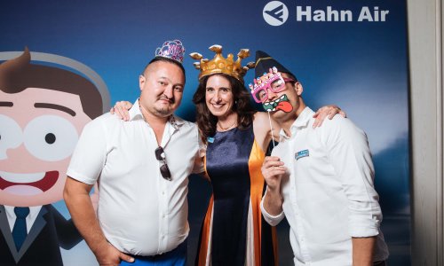 The rooftop bar of the luxurious five-star St. Regis Nikolskaya hotel in Moscow provided the perfect backdrop for Hahn Air’s fourth anniversary party. 80 travel agents, distribution partners and friends celebrated 20 years of Hahn Air tickets. The guests sipped cocktails in Hahn Air’s signature colour blue, enjoyed breathtaking views of the city, rocked the dance floor to the music of a live band and had fun posing with various props in the photo booth.