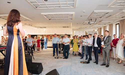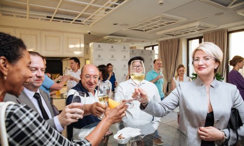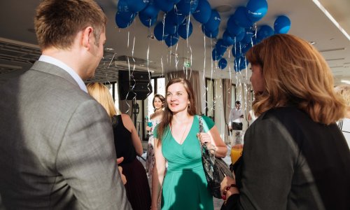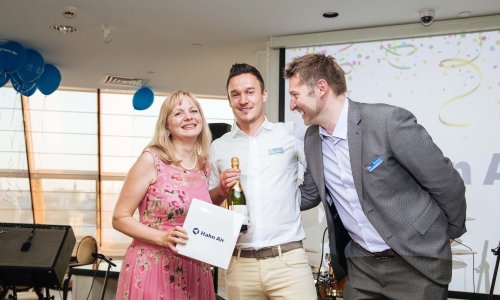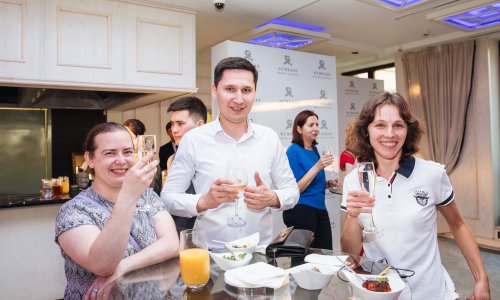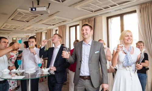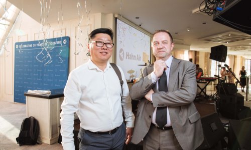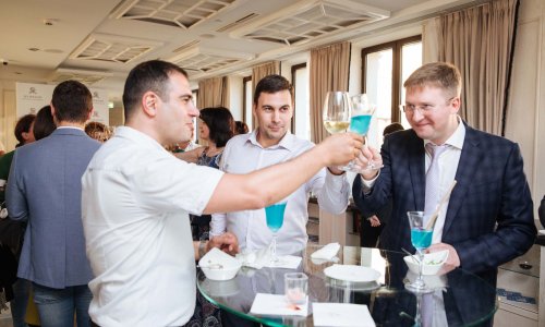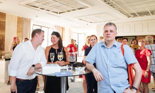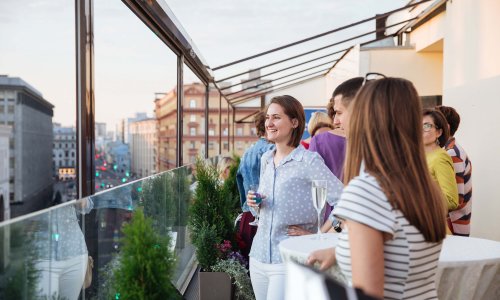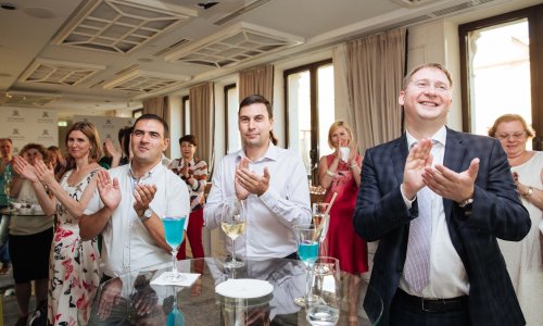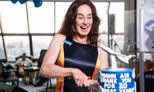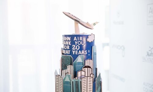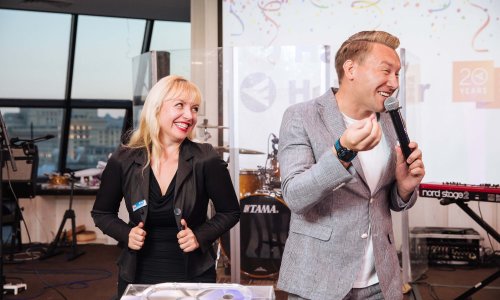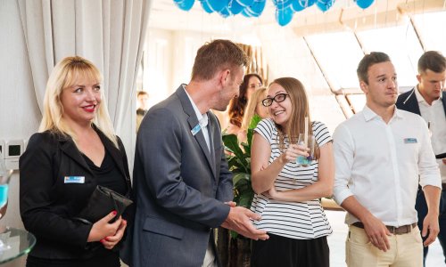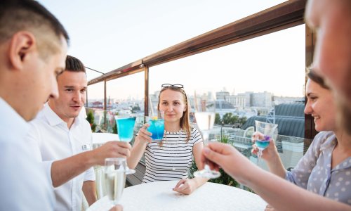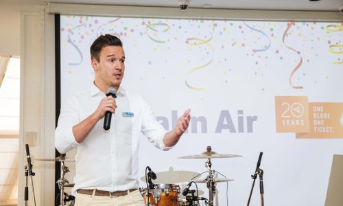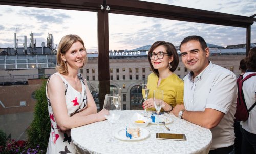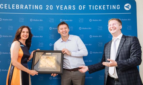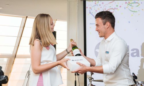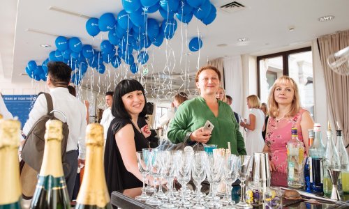 The rooftop bar of the luxurious five-star St. Regis Nikolskaya hotel in Moscow provided the perfect backdrop for Hahn Air’s fourth anniversary party. 80 travel agents, distribution partners and friends celebrated 20 years of Hahn Air tickets. The guests sipped cocktails in Hahn Air’s signature colour blue, enjoyed breathtaking views of the city, rocked the dance floor to the music of a live band and had fun posing with various props in the photo booth.