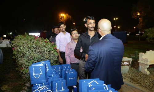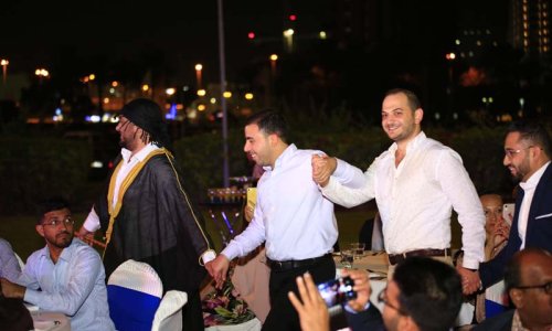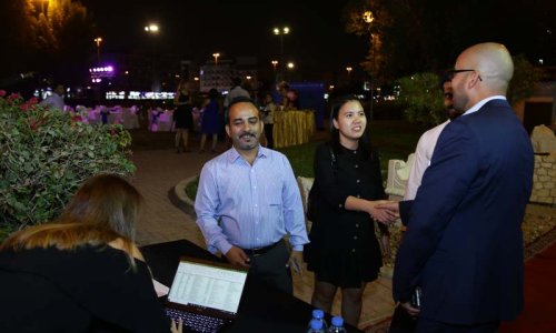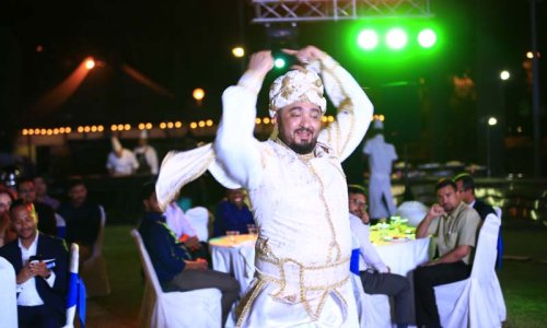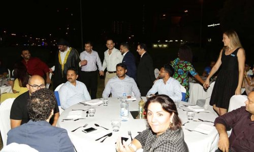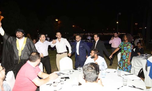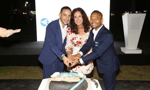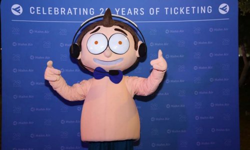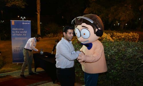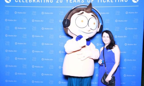 The glamorous metropolis of Dubai in the United Arab Emirates saw yet another Hahn Air birthday celebration take place. The luxurious Hyatt Regency in the Deira Corniche provided the perfect backdrop for the event that welcomed 87 travel agents, distribution partners, members of the press and friends. The guests celebrated under the moon and stars, enjoyed delicious mocktails in Hahn Air’s signature blue, and witnessed great performances with live music, traditional dances and a light-show-act. To top off the night, guests grabbed the opportunity to take a photo with the life size Hahn Air mascot – Martin, the smart travel agent.