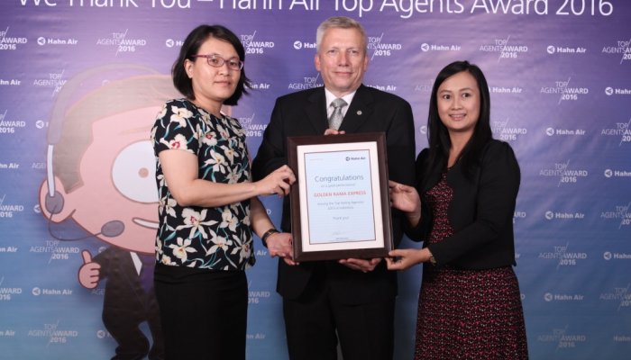 Hahn Air hosted a top agent event in Jakarta. Ralf Masermann, Director Global Account Management was delighted to hand over the trophy and the certificate.