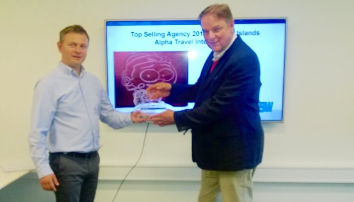 Eric Hoogendoorn, Director Global Account Management, visited the top selling agency "Alpha Travel" on the Faroe Island. He also handed over the Hahn Air certificate and the trophy.