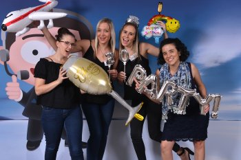 The guests had fun posing in the photo booth with Hahn Air props, enjoyed delicious bites and witnessed the cutting of an enormous Hahn Air birthday cake by Kirsten Rehmann, Managing Director of Hahn Air, Dennis Huk, Vice President Global Account Management, and Candy Kasonkomona, Director Global Account Management.