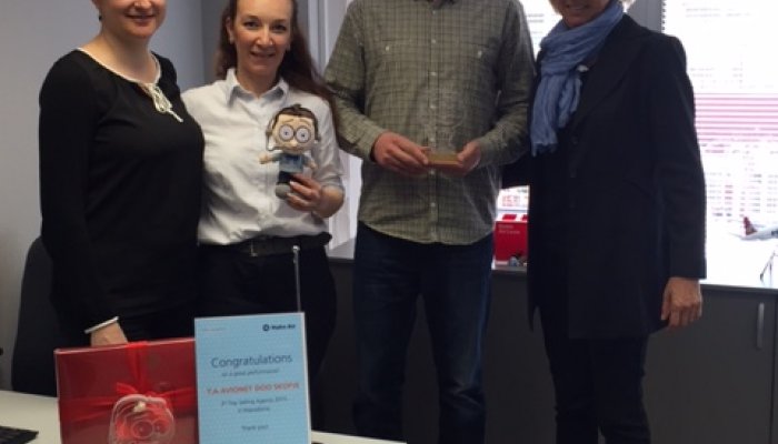 Marianna Cosani had the pleasure to hand over our Martin Trophy and certificate to Ecolog, Biser Travel and Avionet for being the top Hahn Air selling agencies 2015 in Macedonia.