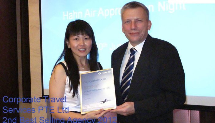 Ralf Masermann had the pleasure to congratulate and thank the best selling agencies of 2012 in Singapore during Hahn Air's Appreciation Night on June 20th, 2013. Thank you all for a great cooperation and for choosing Hahn Air!