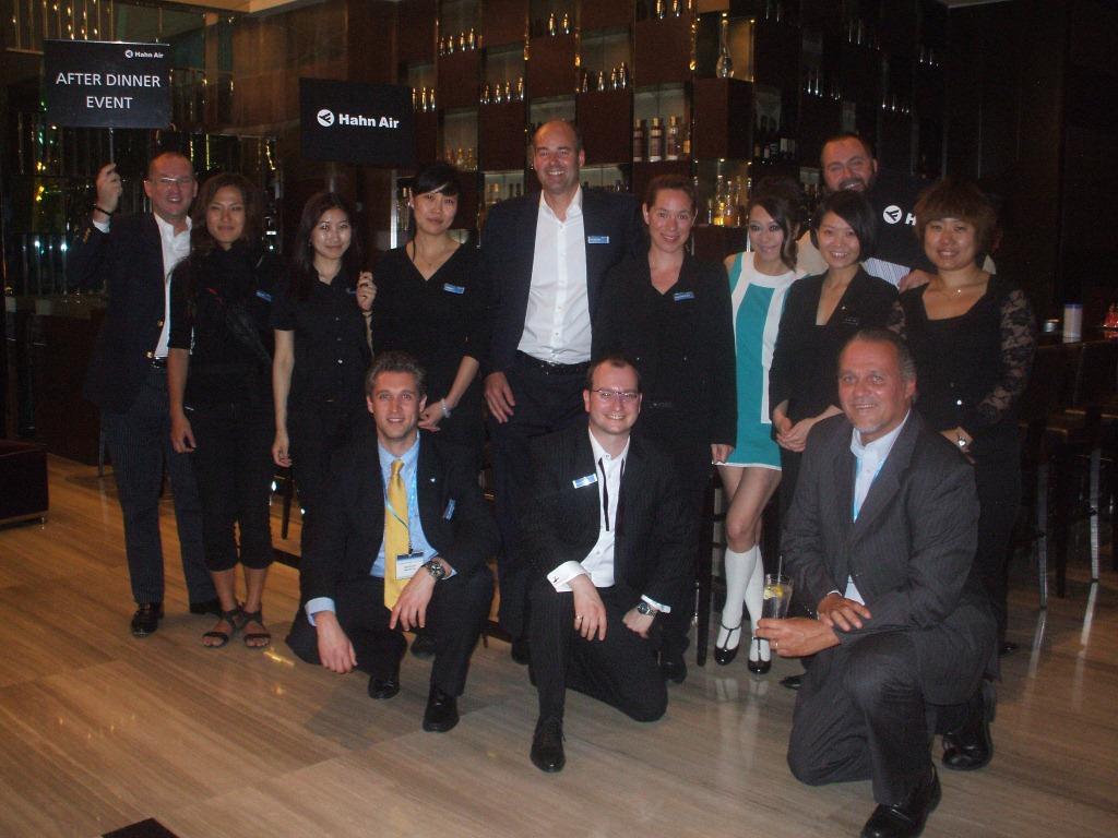 Daniel Rudas, Jörg Troester, Kai Utermann, Steve Knackstedt, Jonas Schmidt and Simon Riha from Hahn Air participated at the IATA AGM 2012 in Beijing. Representing Hahn Air they invited for an After Dinner Event at the China World Summit Wing Hotel and spent a fun night with good music and in good company.
