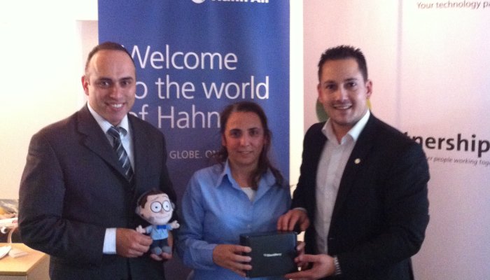 Patric Haenschel, Director Global Account Management, visited the winners of our Hahn Air/Amadeus 2011 competition in Turkey. Congratulations to Taylan Karaca from IATI who won an ipod and to Guler Tacettinoglu from Entas Travel who won a Blackberry.