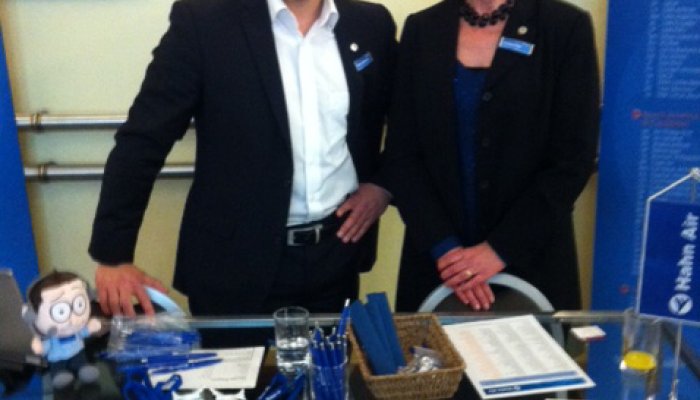 Hahn Air’s Director Global Account Management, Nathalie Weber, and Mercedes Beaudry, Manager Support Desk, at the the Travel Weekly Roadshow in Melbourne, Perth, Brisbane and Sydney May 2012. Our warmest congratulations go to Ken Hu from pjtravel in West Ryde as our lucky winner of the Sydney Roadshow as well as Vanessa Schvetz from MTA- Mobile Travel Agents, our Brisbane winner. Both won a $ 100 Westfield Voucher.