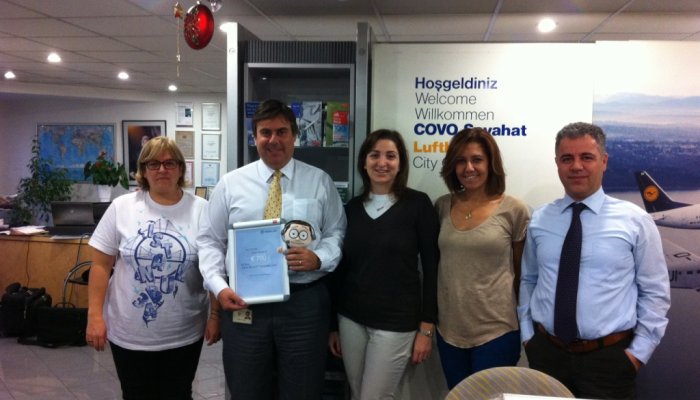 In order to celebrate the start of the network of Hahn Air Ticketing Centres, travel agencies worldwide had the chance to win fantastic prizes when becoming a Hahn Air Ticketing Centre from October to December 2011. We are very happy that we even could meet some of the winners personally: Congratulations to Covo Travel and Tourism in Istanbul, Air Expert in Amsterdam, Naar Tour in Milan, Imuira Travel in Mexico City and Carlson Wagonlit Travel in Zurich!