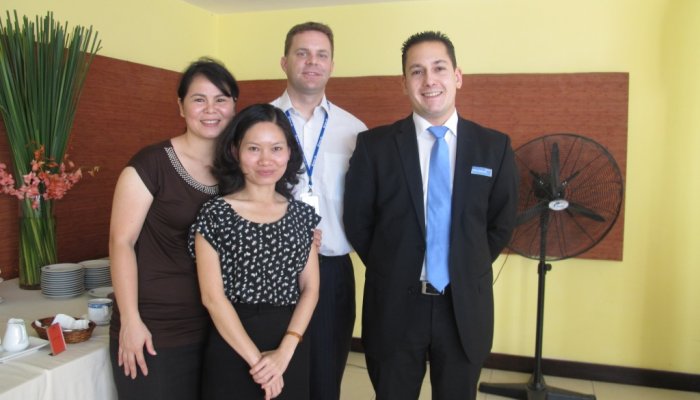 Patric Haenschel and Tobias Jost, Directors Global Account Management, visited travel agents in Vietnam to present Hahn Air's products and services in January 2012.