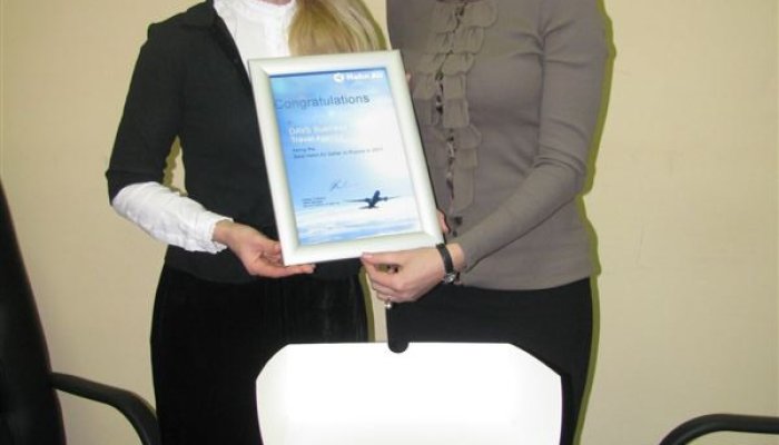 DAVS Business Travel Agency were honored for being the Best Hahn Air Seller in Russia in 2011. Natalia Donskaya and Elena Sutormina of DAVS Business Travel Agency received the certificate inclusive of a delicious cake to celebrate the succuessful year! Congratulations also to Bookbilet, FCM Travel Solutions, VIP Service and Avia Centre company in Mosow which are in the top 5 of the Best Hahn Air Sellers in Russia in 2011!