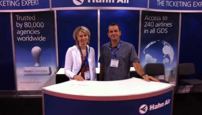 Andreas Ochse, Vice President and Head of Global Account Management, Sandra Dinkelacker, Manager Global Account Management and Steve Beck, Regional Director North America were taking part in ASTA's Travel Retailing & Destination Expo in Las Vegas from 11-13 September 2011. They were happy to welcome many visitors at the Hahn Air booth and thank everyone for his interest in Hahn Air's services!