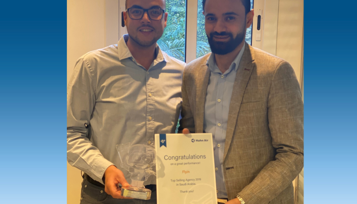 Ahmed from Hahn Air's Global Account Management Team at the office of Flyin.com in Saudi Arabia.