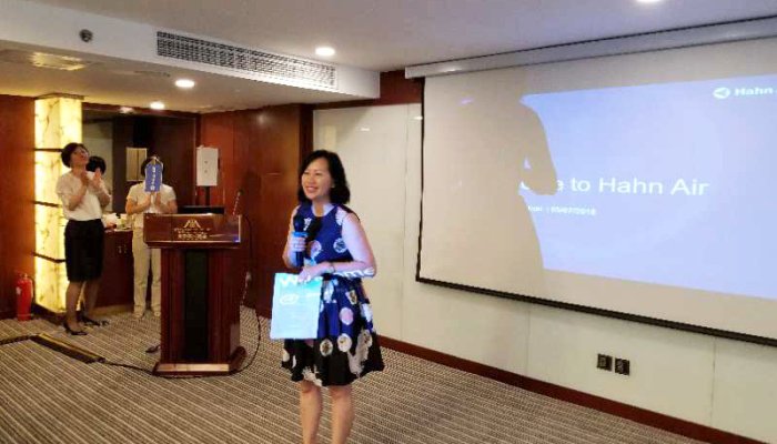 During her recent visit to Beijing, Joyce conducted a seminar for travel agents to inform them about Hahn Air's products and services. She was happy to welcome over 80 participants.