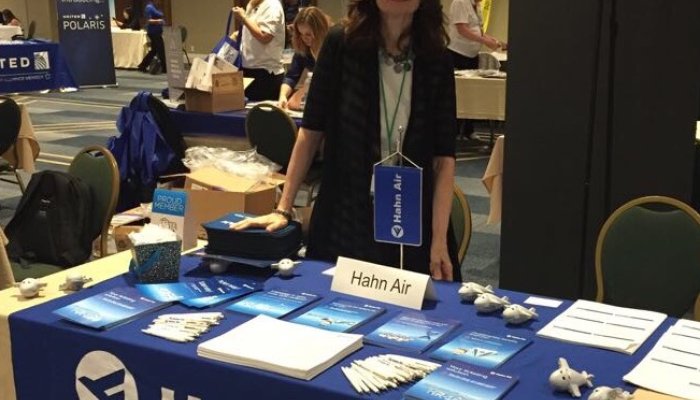 Janet Ulve, joined by Robert Jason Heerenveen, represented Hahn Air at the host organization's annual conference. 500 travel professionals from across the US and Canada participated in the conference. Activities included workshops, seminars and the travel supplier trade show.