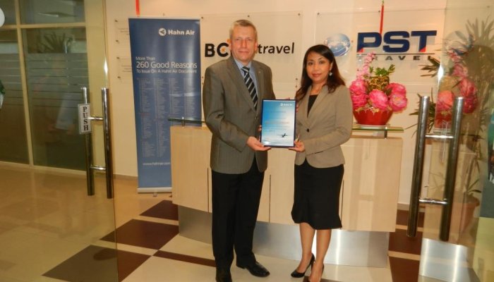 Ralf Masermann from Hahn Air had the chance to meet Ms. Arshad from PST Travel in Kuala Lumpur, Malaysia to hand over the price of 300 Euro credit for their HR UATP e-payment account which the agency won for registering as 3001st HR Ticketing Center on our website.
