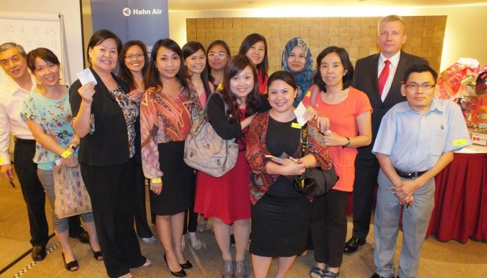 On 12 February 2013, Hahn Air invited its top selling agents in Malaysia to the annual award ceremony in Kuala Lumpur. Ralf Masermann from Hahn Air and our Service Partner Global Alliance welcomed about 40 guests to a dinner event and a fun night with games and prizes in the Marriott Hotel. Thank you all for your great support and trust in our services!