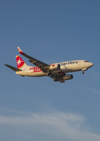 Star Peru is a Peruvian carrier based in Lima (LIM). It currently operates domestic flights to Cajamarca (CJA), Chiclayo (CIX), Huanuco (HUU), Iquitos (IQT), Pucallpa (PCL) and Tarapoto (TPP) with Boeing 737-300 and Dash Q400 aircraft. Star Peru was founded in 1997.